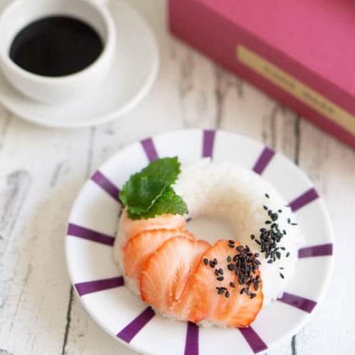 Vorbereitung für Sushi mit Milchreis in Donutform